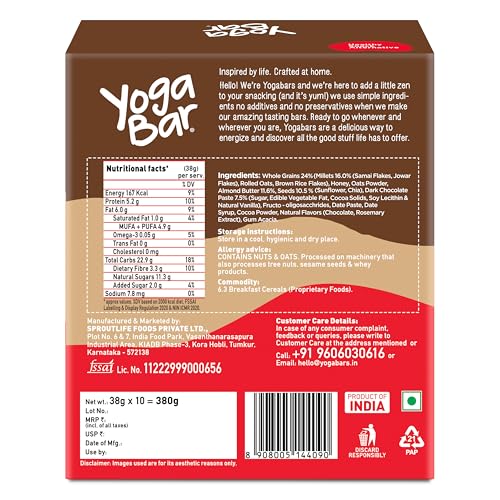 HomeGroceryHealthy BreakfastHealth BarYogabar Energy Bars Chocolate Chunk | Multigrain Daily Protein Snack | High Energy & Nutrition Bars | 8g Protein & 7g Fibre Protein bars | Pack of 10 x 35g Energy Bars | No Preservatives