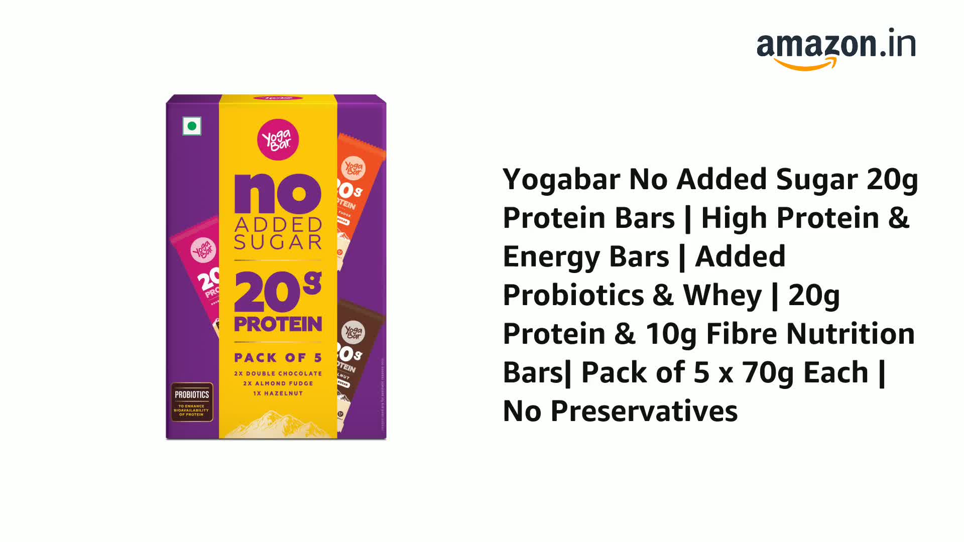 HomeGroceryHealthy BreakfastHealth BarYogabar No Added Sugar 20g Protein Bars | High Protein & Energy Bars | Added Probiotics & Whey | 20g Protein & 10g Fibre Nutrition Bars| Pack of 5 x 70g Each | No Preservatives