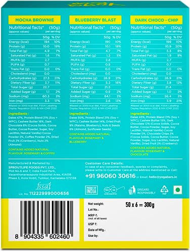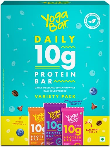 HomeGroceryHealthy BreakfastHealth BarYogabar Variety Pack 10 grams Protein Bars [Pack of 6], Pro-Blend & Premium Whey,100% Veg, Rich Protein Bar with Date, Vitamins, Fiber, Energy & Immunity for fitness.