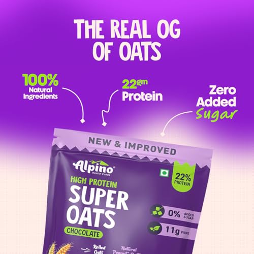 ALPINO High Protein Super Oats Chocolate 1kg – Rolled Oats, Natural Peanut Butter, Cocoa Powder, Nuts & Seeds – 22% Protein, Source of Dietary Fibre & Healthy Fats, No Added Sugar & Salt