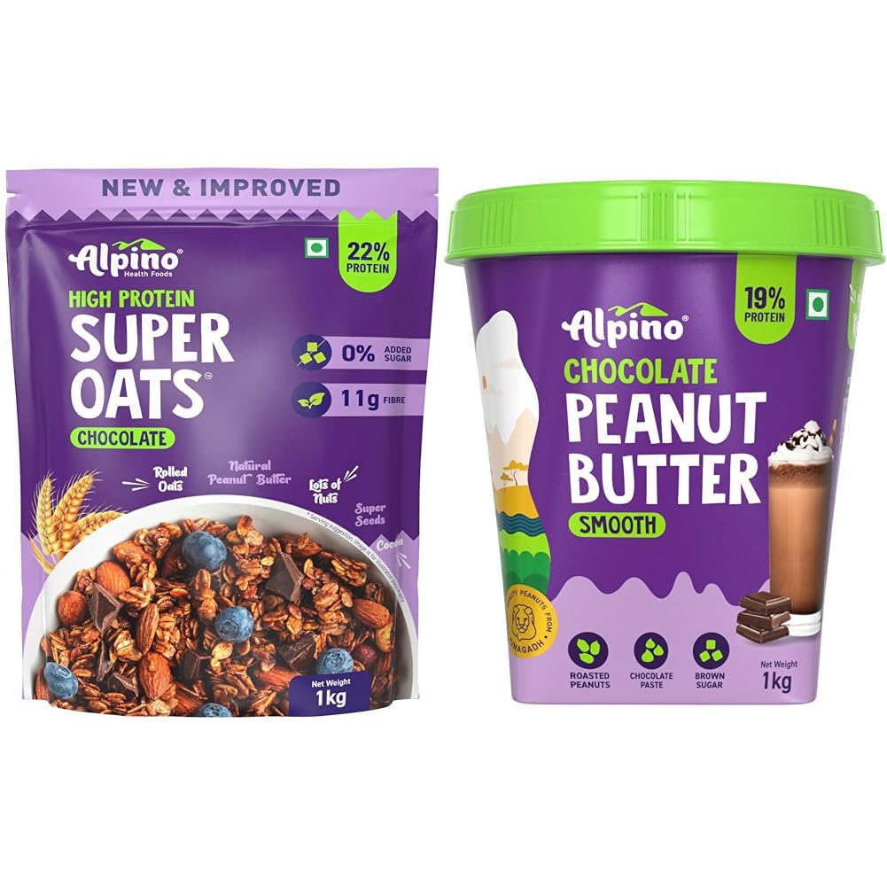 Alpino Peanut Butter Super Oats Chocolate Super Oats + Peanut Butter Smooth 1 kg each combo