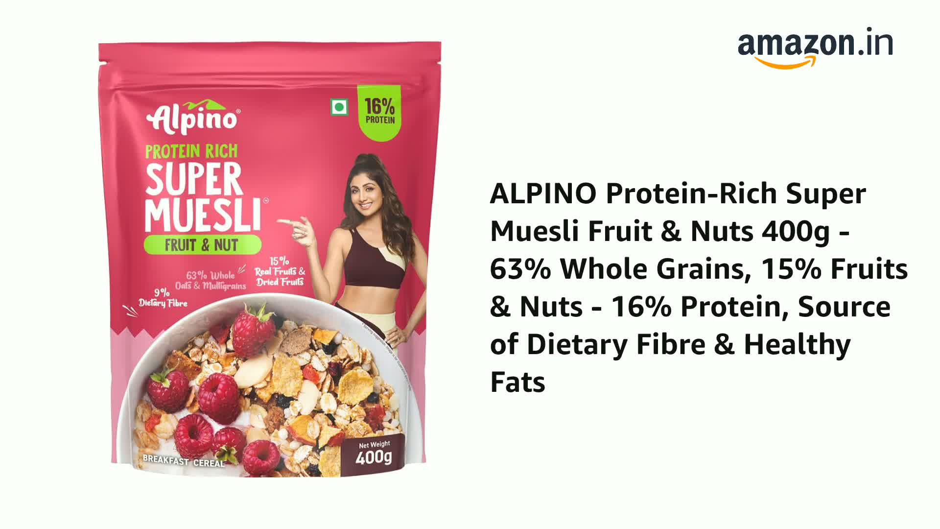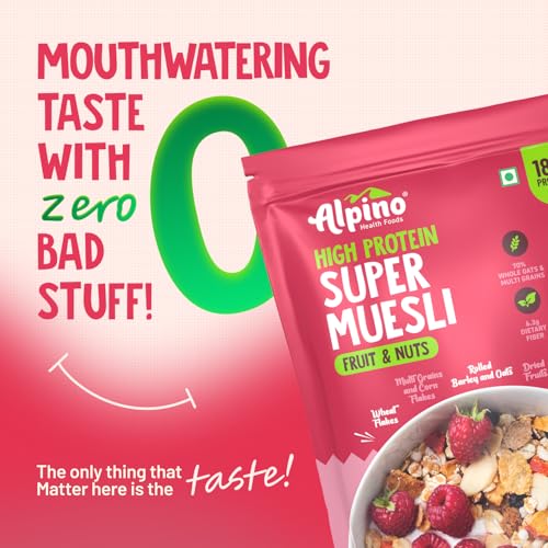 ALPINO Protein-Rich Super Muesli Fruit & Nuts 400g - 63% Whole Grains, 15% Fruits & Nuts - 16% Protein, Source of Dietary Fibre & Healthy Fats