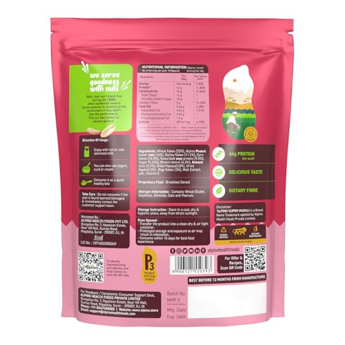 • Made with Roasted Peanuts Rolled Oats Multi Grains Comes with Real Dried Fruits & Nuts No Sugar Infused Fruits