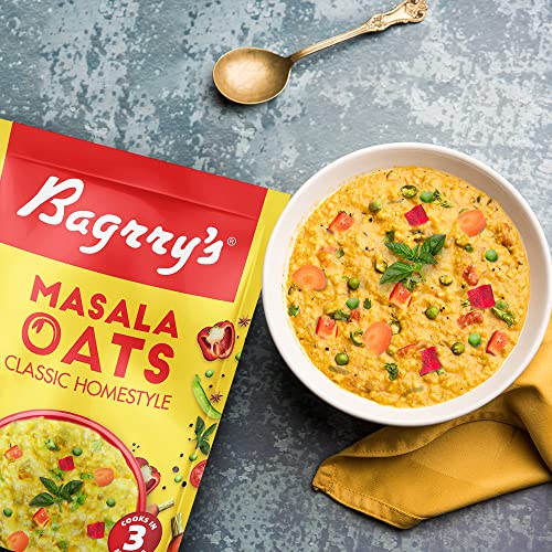 Bagrry's Masala Oats 500gm Pouch | Classic Homestyle | Source of Protein| High Fibre| Helps Manage Weight| BreakFast Cereal| Healthy Snack|Made With 100% Whole Grain Oats| Masala Oats