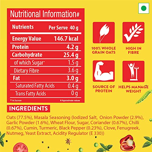 Made with 100% Wholegrain Oats Bagrrys Masala Oats is high in fibre and protein keeping you fuller for longer helping you control your hunger pangs and manage weight