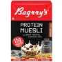 Bagrry's Protein Muesli - ChocolateAbout the Product:A first-of-its-kind protein product that is all-natural and has the benefit of whole grain fiber, heart-healthy oats, and Californian almonds. Bagrrys Protein Muesli blends the best whey protein processed in the US and soy protein isolate so you can meet your daily protein requirement with no extra effort.Ingredients:Whole Oats, Whole Wheat, Californian Almonds, Real Chocolate, and Natural Whey Protein Blend.Legal Disclaimer: Product images are for illustrative purposes only. Images/packaging/ labels may vary from time to time due to changes made by the manufacturer's manufacturing batch and loc