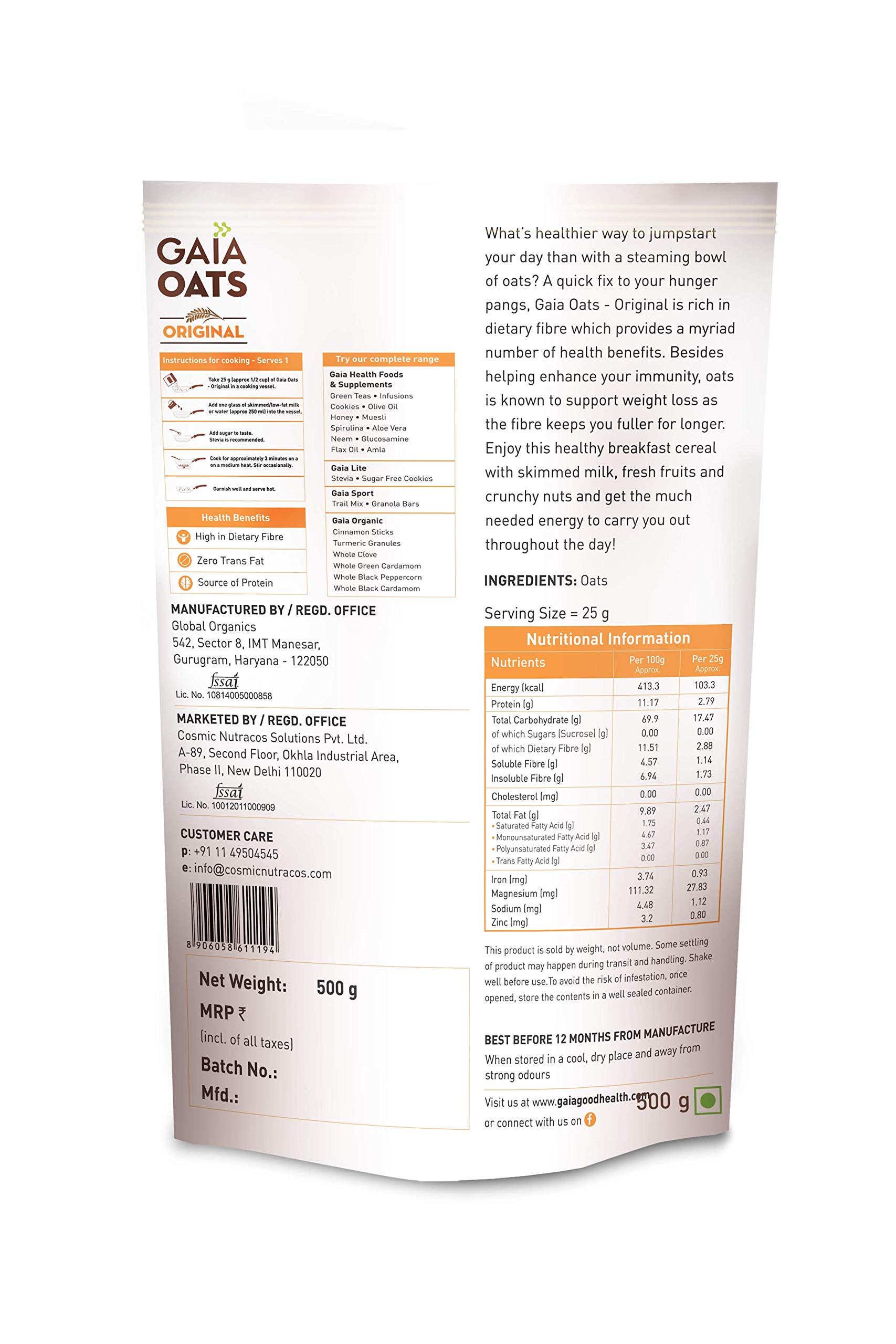 HomeGroceryHealthy BreakfastOats & MuesliGAIA Oats Original: A Fiber Rich Protein Packed Gluten Free Breakfast with Zero Trans Fat Now Available in Convenient 500 gm Each Packs (Pack of 3)