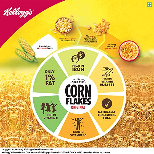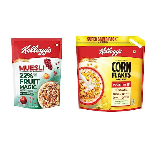 HomeGroceryHealthy BreakfastFlakesKellogg's Muesli 22% Fruit Magic High in Fibre &Vitamin C Naturally Cholesterol Free 500g + Corn Flakes Original B Group Vitamins 1.2kg Breakfast Cereals High in Iron