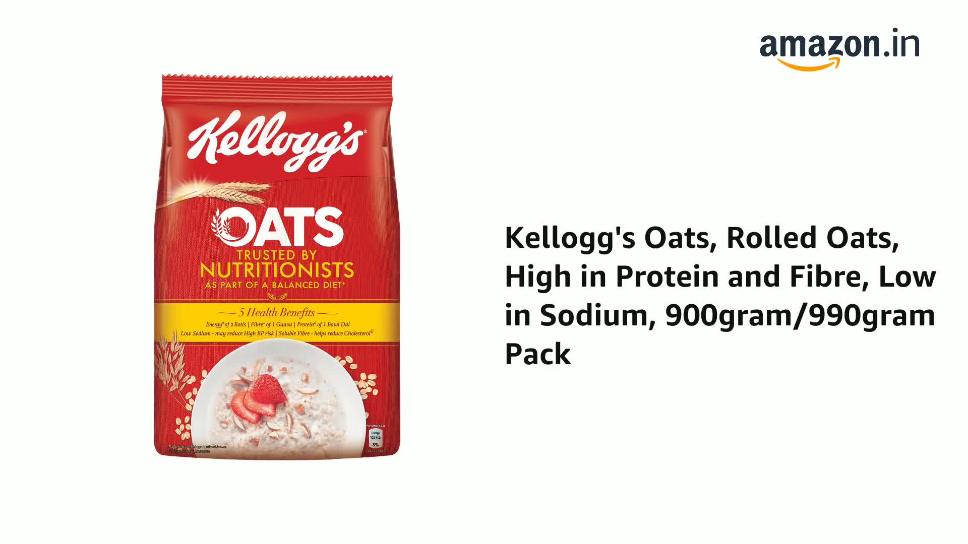 Kellogg's Oats, Rolled Oats, High in Protein and Fibre, Low in Sodium, 900gram/990gram Pack