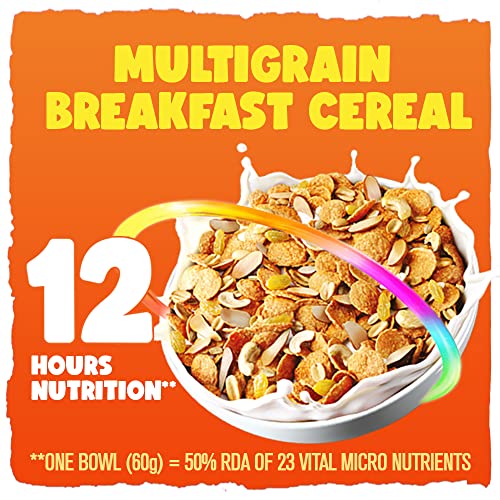 Manna Go Grains Crunchies Oats and Nuts. Multigrain Breakfast Cereal for Kids. No Maida No Refined Sugar.Fortified Cereal with 50% RDA of 23 Essential Vitamins and Minerals in every bowl. 300g