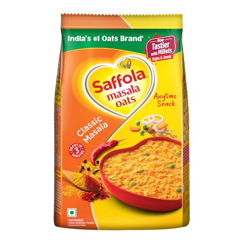 Saffola Masala Oats | Classic Masala | Tasty, Anytime Snack | Ready in 3 mins | Millets Goodness- with Bajra & Jowar | No maida , No added preservatives | helps manage weight |500g ​