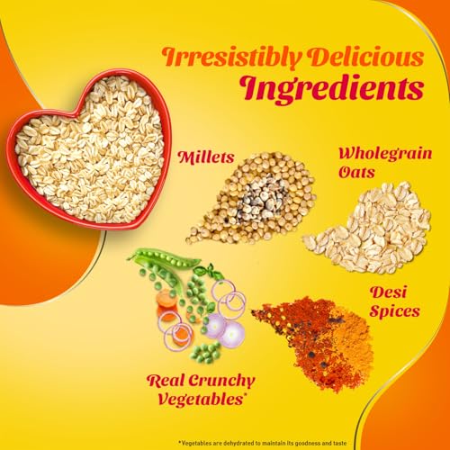 Oats (73.9%) Maltodextrin Salt Spices and Condiments (3.4%) (Onion Tumeric Pepper Cumin Garlic Fenugreek Clove Nutmeg Red Chilli)) Dried Vegetables (Carrots(l .15%) Onion Flakes (1.15%) Green Peas(O.69%)) Sugar Starch Hydrolysed Vegetable Protein Wheat Po