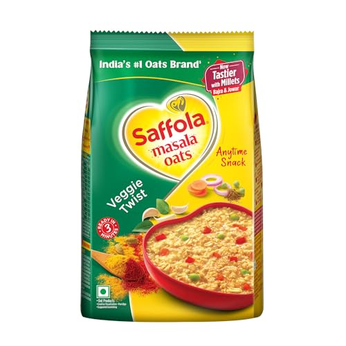 • Veggie Twist from Saffola Masala Oats has a rich and creamy blend of aromatic spices with a crunchy mix of carrots peas and french beans