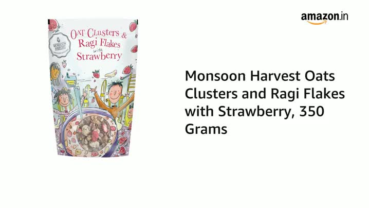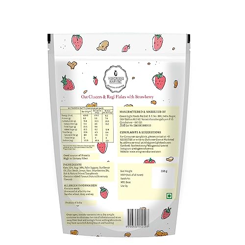 MONSOON HARVEST Wingreens Harvest Oats Clusters & Ragi Flakes With Strawberry| Oats Flax Seeds Granola| Breakfast Cereal| 350 G