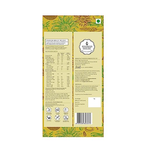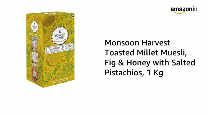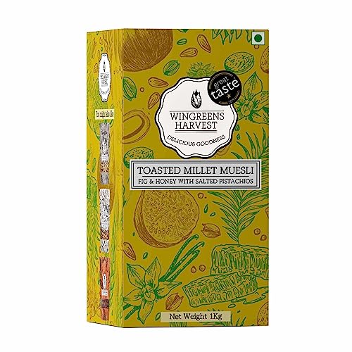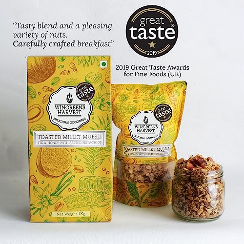 MONSOON HARVEST Wingreens Toasted Millet Muesli Fig & Honey with Salted Pistachios 1 kg Natural breakfast Cereal Healthy Gluten-Free with whole grains nuts & dry fruits high fiber.