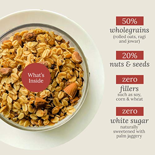 Powerhouse Breakfast : Kick-start your day with a bowl of our versatile millet muesli. Goodness of rolled oats ragi and jowar. Loaded with delicious almonds and carefully selected high quality figs and pistachios. The muesli can be enjoyed with any milk o