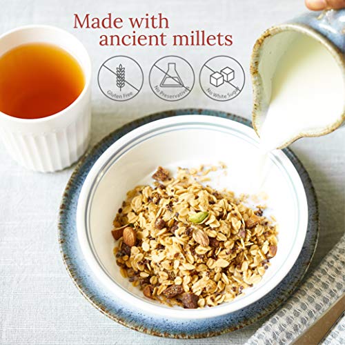 Gluten Free Cereal : No soy no wheat no corn non GMO. Hand crafted in small batches to ensure quality. Packed with plant-based nutrition. Packed with almonds and the goodness of grain based proteins from the rolled oats and millets.