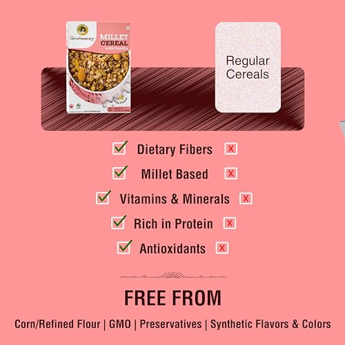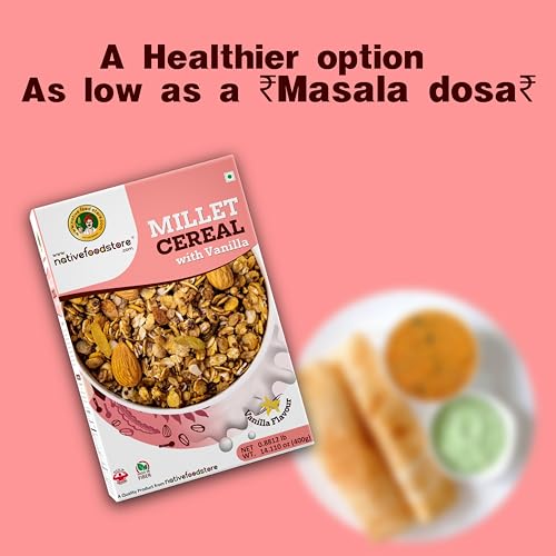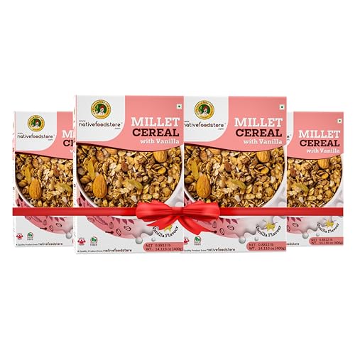 NFS presents its No Artificial Preservatives Millet Muesli Vanilla Crunchy a delightful and nutritious breakfast option conveniently packed in a set of 4. Crafted with care this muesli boasts the wholesome goodness of millet combined with a tantalizing hint of vanilla flavor and a satisfying crunch. Free from artificial preservatives each serving ensures a natural and healthy start to your day. Whether enjoyed with milk yogurt or your preferred plant-based alternative this muesli offers a delicious and fulfilling breakfast experience. With four packs included you'll have an abundant supply to relish at home or share with family and friends. Elevate your breakfast routine with NFS No Artificial Preservatives Millet Muesli Vanilla Crunchy a delicious choice that prioritizes wholesome ingredients.