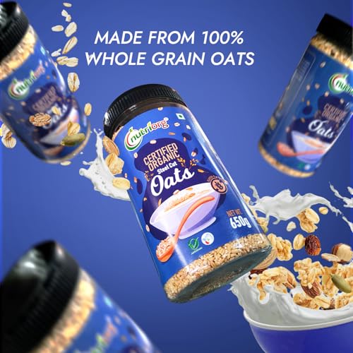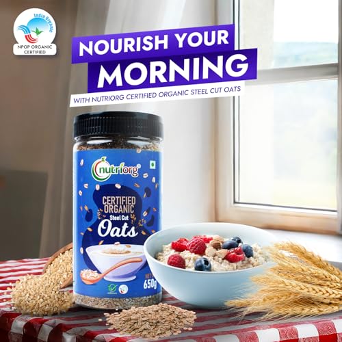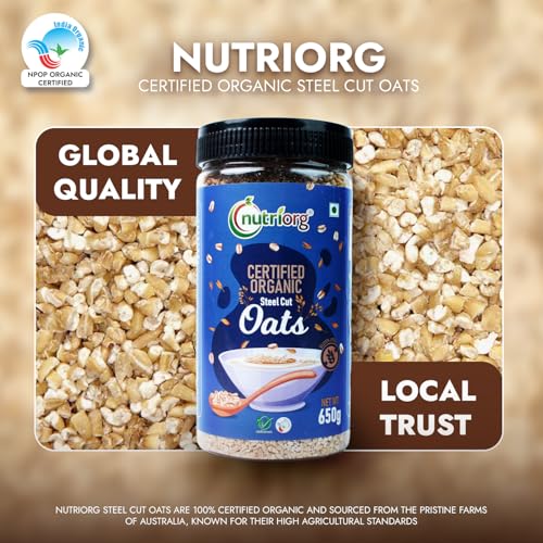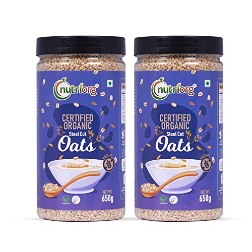 Nutriorg Gluten Free Organic Steel Cuts Oats 1300G (Pack Of 2 * 650) | Premium Oats High Fiber 100% Whole Grain - Natural