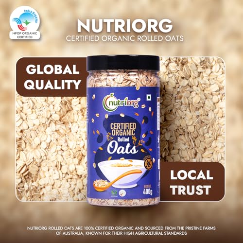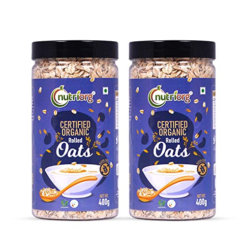 Nutriorg Organic Rolled Oats 800g (Pack of 2 * 400g) | Gluten Free Oats | High Fiber Protein Rich Oats | Oats for Weight Loss