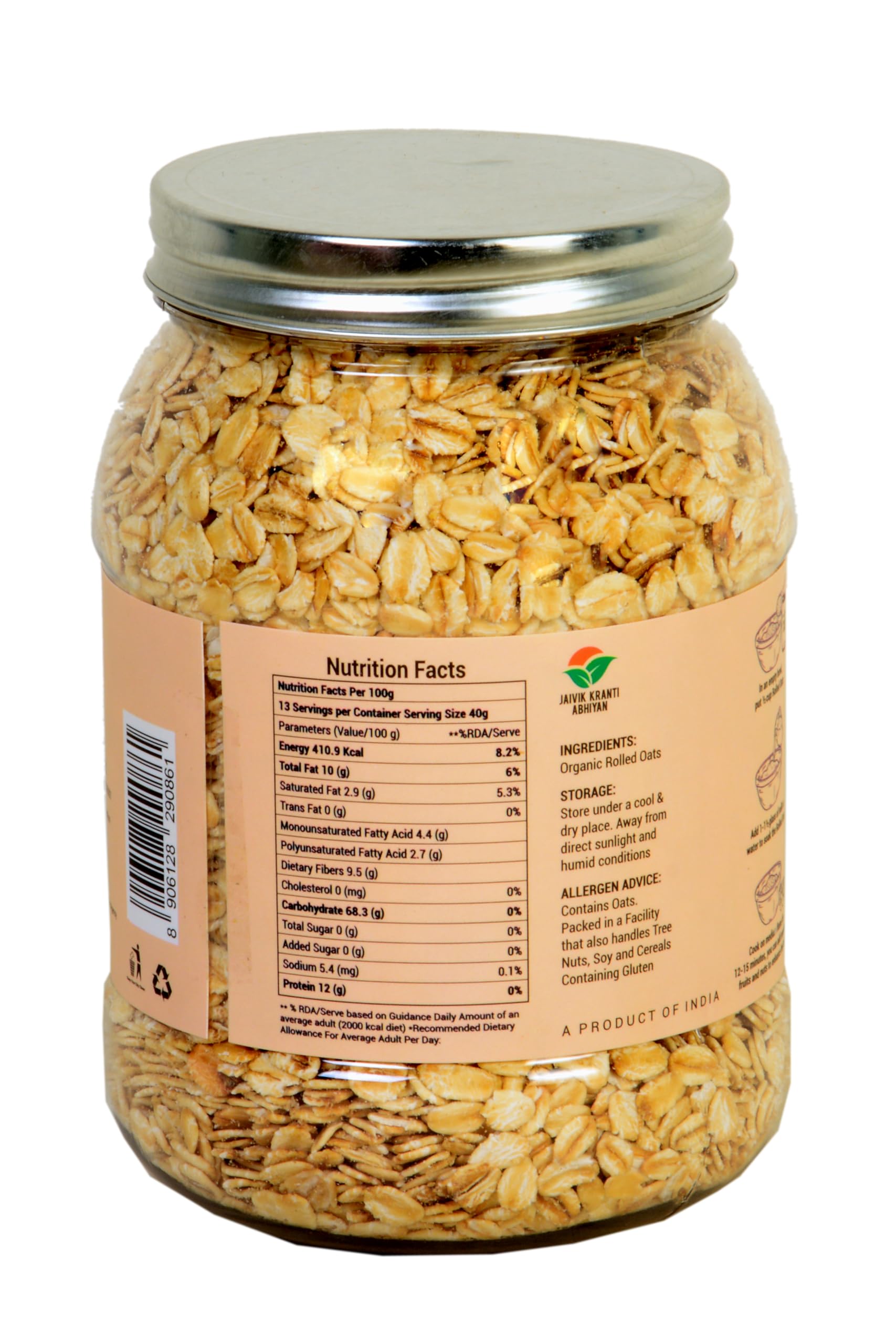 Hours-long fullness: Our powder-free Organic Rolled Oats are uniform in size and rich in dietary fibres keeping you full until lunch. Consume it as overnight quick oats or cook it as masala oats