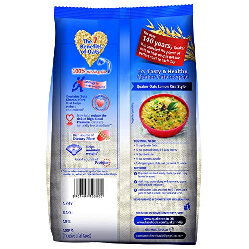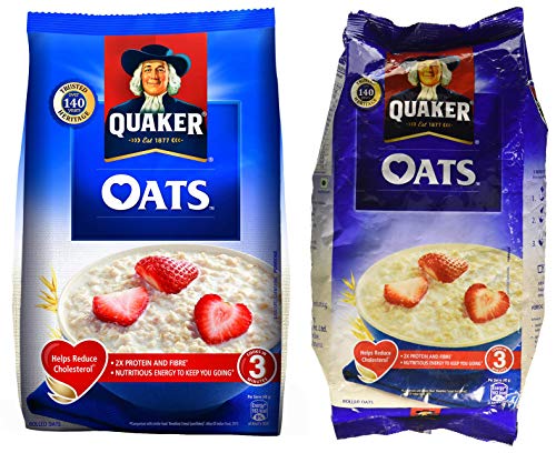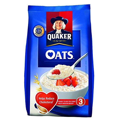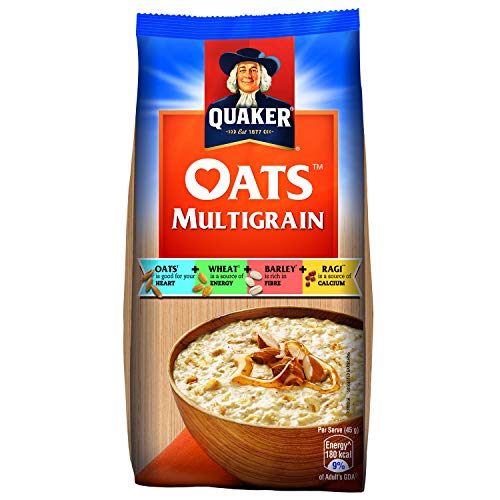 Quaker Oats Pouch 1kgQuaker Oats Breakfast Cereals is enriched with fibre and protein. Quaker uses 100% wholegrain oats as it is a natural source of carbohydrates. It helps you increase your energy level. Maximum shelf life: 36 monthsQuaker Oats Plus - 600g PouchWith the goodness of 4 different grains - Oats Wheat Ragi and Barley in one pack Quaker Oats Plus give you the energy to do more of what you love!! The Multigrain Advantage - Oats are good for your heart + Wheat is a source of energy + Barley is rich in fibre + Ragi is a source of calcium. One serve of Quaker Oats Plus (~45g of dry product) will give you energy equal to 2 Phulkas(Rotis) Fibre equal to 1¼ Apples and Protein quantity equal to ½ a cup cooked Chana Dal. Quaker Oats Plus is 92% fat-free which may help reduce risk of heart diseases. Get your healthy breakfast every day with the benefits of multigrain in a wholesome bowl of Quaker Plus in just 3 minutes. Try it with delicious toppings of fresh or dried fruits nuts or cinnamon. Nutritional information (per 100g): Energy - 399 Kcal Protein - 11.1 g Total Fat -8.0 g Total Carbohydrate - 70.7 g Total Dietary Fibre - 10 .0g Iron - 3.5 mg Magnesium - 112.5 mg Sodium - 117.4 mg Zinc - 2.6 mg Calcium -46.6 mg. Ingredients: Oats (60%) Wheat Flakes (18 %) Barley Flakes (15%) Ragi Flakes (5%) Sugar Salt Malt Extract. About the brand - For over 135 years Quaker has unlocked the power of oats to help people get the perfect start to each day.