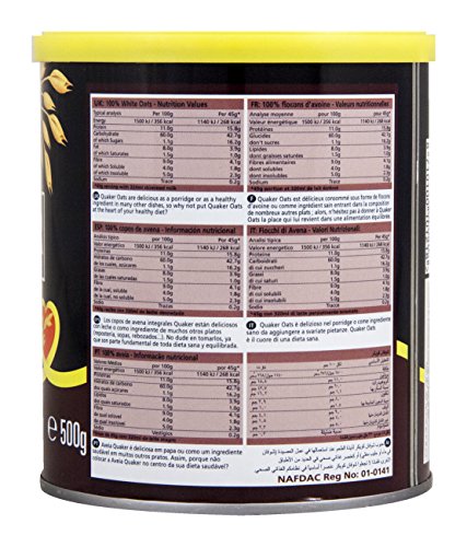 Quaker oats breakfast cereals is enriched with fibre and protein. Quaker uses 100% wholegrain oats as it is a natural source of carbohydrates.