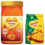 Saffola Honey Active Made with Sundarban Forest Honey 100% Pure Honey No sugar adulteration Natural Immunity booster 1KgHoney is a natural food and comes with multiple uses and benefits and should be used in its pure form. Pure Honey is also a healthy alternative to sugar and is considered one of the most wonderful gifts that nature has ever gifted to mankind. Honey for weight loss is also a common use of Honey for consumers also honey is a natural source of energy boosts immunity and contains antioxidants. Saffola Honey Active is made with multiflora honey including delicious Sundarban Forest honey - a pure and natural honey. It is naturally sweet aromatic and fruity. Start your day with a delightful spoon of Saffola Honey Active. It is tested and complies with 22 rigorous quality checks of FSSAI. Each bottle of Saffola Honey Active is 100% Pure and free from Sugar adulteration and comes with a Purity certificate that is made available to its consumers. You can scan QR code at back of the pack and download your purity certificate. Some of the uses of Saffola Honey Active - with warm water in morning for weight management as a sugar substitute in breakfast or with warm milk can be used in making sweets and pancakes and many more uses where pure honey is used.Saffola Masala Oats | Tasty Evening Snack| Healthy Snack| Veggie Twist| 500gSaffola Masala Oats brings to you a range of delightful flavours making for a perfect evening snack. Made with wholegrain oats real vegetables & a tasty mix of authentic desi spices Saffola Masala Oats forms a delectable warm bowl of joy. What's more is that it is ready to eat in just 3 minutes - super convenient to make super tasty to eat and super hard to resist! You can also enjoy Saffola Masala Oats in a variety of tasty recipes like Crispy Cutlets Penne Pasta or just as a delicious bowl of joy with crunchy topping like namkeen peanuts or crushed papad. Saffola Masala Oats is available in a range of lip-smacking flavours - Classic Masala for the classic masaledar experience | Veggie Twist for the comforting blend of spices and vegetables | Peppy tomato for a tangy indulgence | Masala Coriander for the tasty mix of desi spices with coriander notes | Curry & Pepper with a lingering aroma of curry leaves. Made with wholegrain Oats & real vegetables Saffola Masala Oats is high in fibre and protein keeping you fuller for longer helping you control your hunger pangs and manage weight.