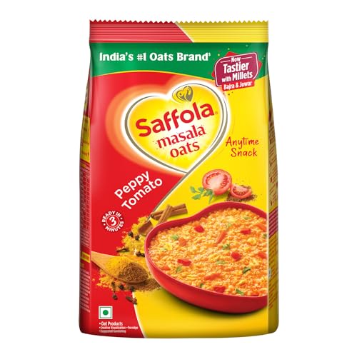 Saffola Masala Oats brings to you a range of delightful flavours making for a perfect evening snack. Made with wholegrain oats real vegetables & a tasty mix of authentic desi spices Saffola Masala Oats forms a delectable warm bowl of joy. What's more is that it is ready to eat in just 3 minutes - super convenient to make super tasty to eat and super hard to resist! You can also enjoy Saffola Masala Oats in a variety of tasty recipes like Crispy Cutlets Penne Pasta or just as a delicious bowl of joy with crunchy topping like namkeen peanuts or crushed papad. Saffola Masala Oats is available in a range of lip-smacking flavours - Classic Masala for the classic masaledar experience | Veggie Twist for the comforting blend of spices and vegetables | Peppy tomato for a tangy indulgence | Masala Coriander for the tasty mix of desi spices with coriander notes | Curry & Pepper with a lingering aroma of curry leaves. Made with wholegrain Oats & real vegetables Saffola Masala Oats is high in fibre and protein keeping you fuller for longer helping you control your hunger pangs and manage weight.