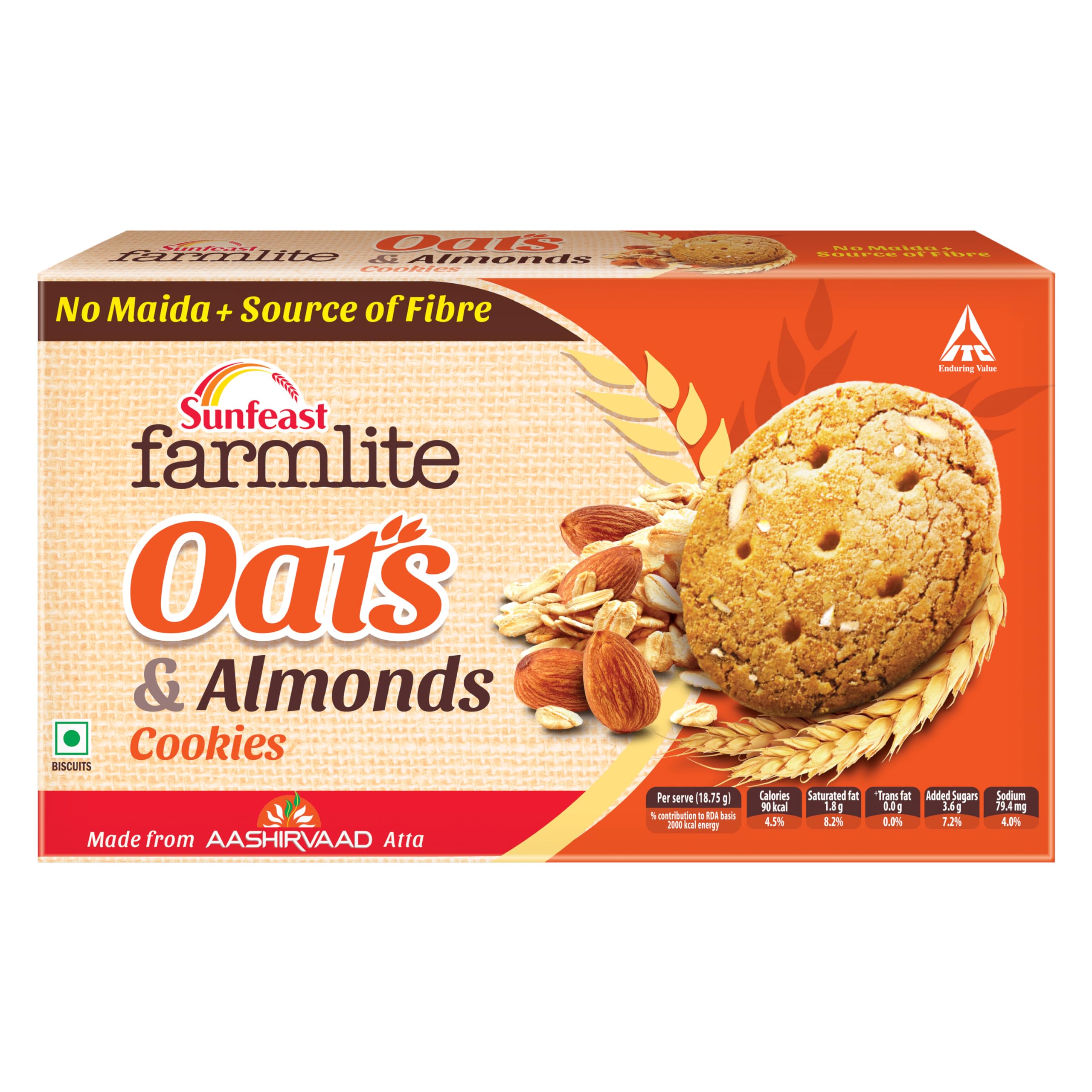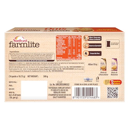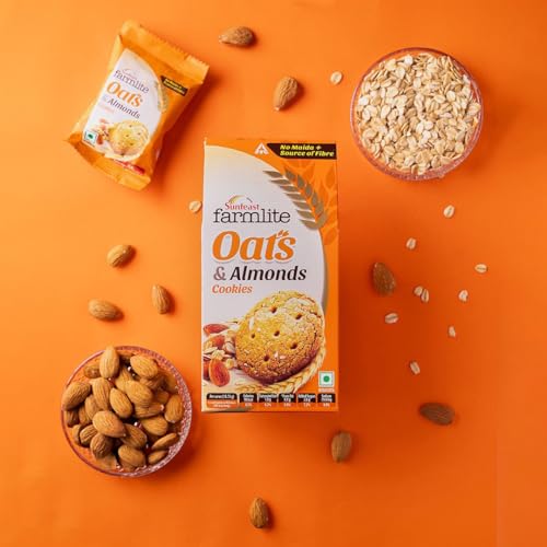 Farmlite Oats & Almonds is a range of wholesome biscuits made from the grains sourced from the finest farm of India. Along with the goodness of grains it is packed with super healthy and tasty ingredients like wheat almonds that provide balanced nutrition along with a rich tasty experience. A perfect cookie for your everyday chai moments or those sudden hunger pangs