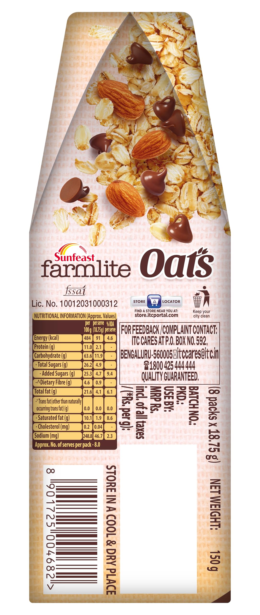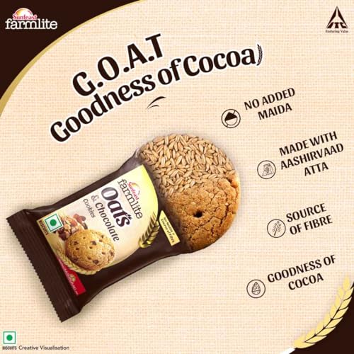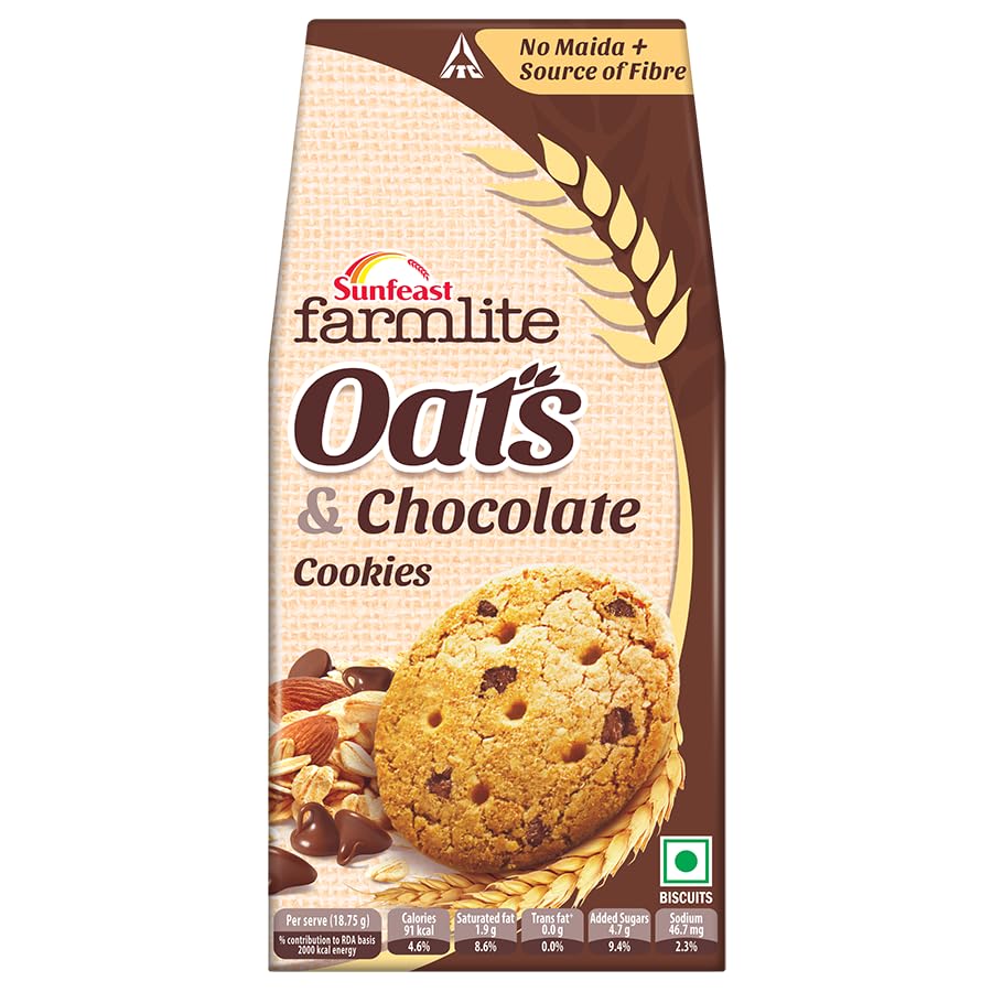 Farmlite Oats & Chocolate is a range of wholesome biscuits made from the grains sourced from the finest farm of India. Along with the goodness of grains it is packed with super healthy and tasty ingredients like wheat Chocolate that provide balanced nutrition along with a rich tasty experience. A perfect cookie for your everyday chai moments or those sudden hunger pangs