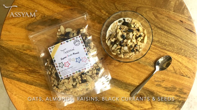 Super Fruit Muesli Cereal 250gms (8.8 oz), Rolled Oats + Dehydrated & Dried Fruits by Tassyam