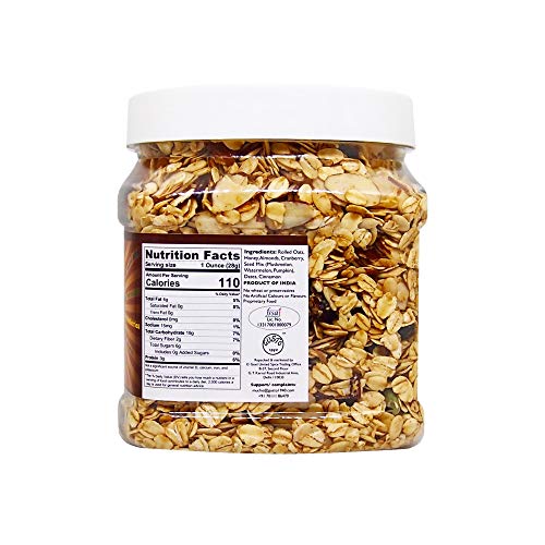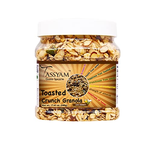 Tassyam Toasted Crunch Granola with Honey 500g + Free White Tea | Oil-Free | Rolled Oats Dehydrated & Dried Fruits
