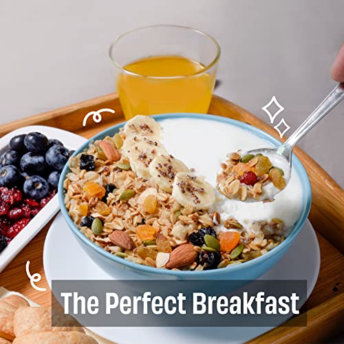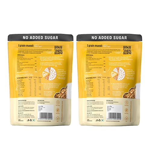Whatthe perfect breakfast? It gets you started On everything! Protein carbs good fats natural fibers vitamins minerals - it should get your dayticker rolling on all fronts. It keeps you up. Ever felt like plonking right back into bed after breakfast? Itnot you¦itthe simple carbs (and refined sugars) leading to an insulin surge. It keeps you going Breakfast should get you to lunch. If it fizzles out midway (and your energy crashes by noon) itbecause the energy release was fast and spiky. Not slow and steady. We crafted these Mueslis to tick all those boxes and more. Herehow: Balanced Macros: Unlike traditional breakfast cereals that are loaded with carbs (and little else) only half the energy here comes from carbs. And the other half from good fats & proteins. Sustained Energy: Majority of the carbs are complex slow-release carbs from whole grains. Which means steady energy release that gets you through the day. Insulin Impact: The complex carbs and natural fibres help avoid a sudden insulin surge. No spikes and crashes. No refined sugar: Sugar ain't bad. Refined nutritionally empty sugar is. So to sweeten this Muesli we found Kakvi. A dark golden liquid used for ages in rural coastal India - itthe most un-refined form of sugarcane you can find. And iteven more nutritious than jaggery! Portion controlled: The real problem with a sugary breakfast cereal is how much we eat of it. Both as breakfast and generally - as a snack. Thatwhy we send you a measuring scoop. 2 scoops = 1 serving = ~220 calories. Another 120cal from 200ml milk - and your morning is sorted under 350cal! But no cheating ok!