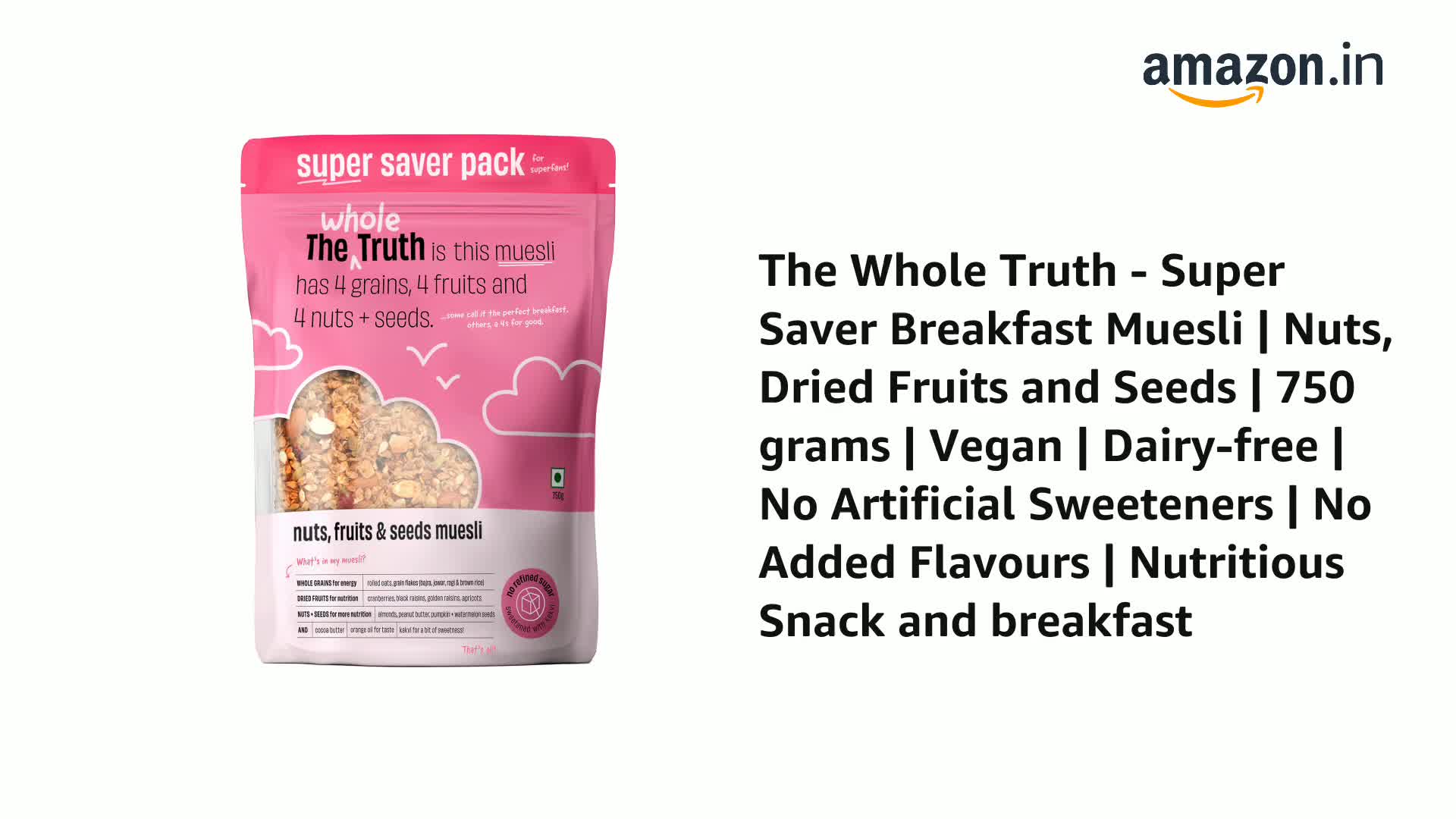 The Whole Truth - Super Saver Breakfast Muesli | Nuts Dried Fruits and Seeds | 750 grams | Vegan | Dairy-free | No Artificial Sweeteners | No Added Flavours | Nutritious Snack and breakfast