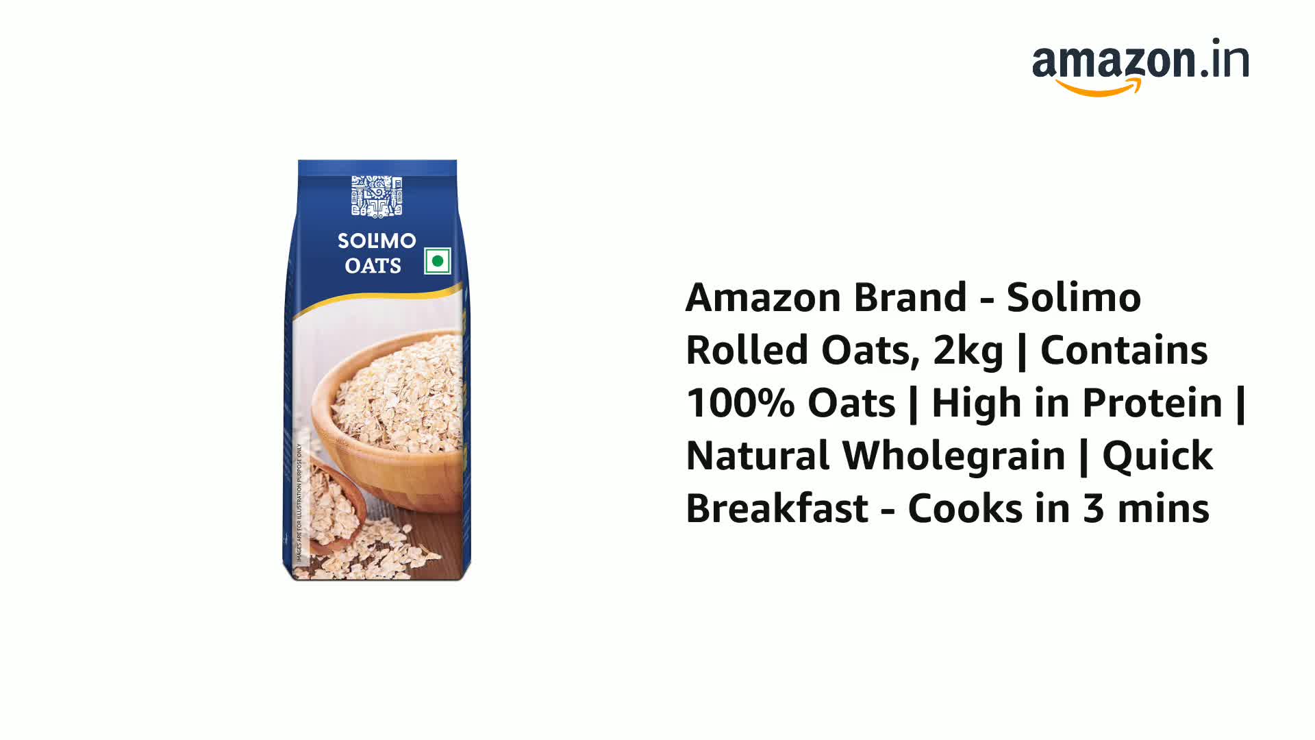 Introducing the Amazon Brand Solimo Rolled Oats 2 kg. The oats can be used for porridge or in baked goods and smoothies. They can also be used for classic breakfast items. Made with good-quality ingredients the oats are delicious. The oats are also a source of protein. The oats are packed hygienically to retain freshness.