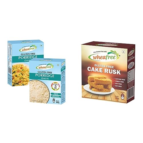 Wheafree Gluten Free Porridge/Dalia (Pack of 2-500gm each) | Now with the Goodness of QuinoaWheafree Porridge (Dalia) is your healthy replacement to Wheat Dalia and is made from five broken grains- Quinoa Sorghum Maize Brown Rice and White Rice. As our Porridge (Dalia) is neutral flavour you can make a savoury dish and spice it with vegetables and your favourite spices OR make a sweet dish with milk and nuts. Wheafree Porridge (Dalia) is high in dietary fibres and proteins which helps to improve your digestive system lowers the risk of high blood pressure cardiac diseases and gives you the energy to kickstart your day. HOW TO MAKE Put 50g of Dalia in a cooker and put 1/2 tablespoon of Desi Ghee/ Butter/ Oil and saute on low flame for 1/2 minute (30 seconds). Put 1.5 cups (250ml) of water and steam for 2-3 minutes. SAVOURY TASTE Saute the finely cut vegetables (Beans Cauliflower Carrot etc.) in a fry pan. Add salt and pepper according to your taste. Add steamed Dalia in the pan and stir-fry for a few minutes. Garnish with coriander. SWEET TASTE Add steamed Dalia to milk add pinch of cardamom powder and sugar to taste and boil for 2 minutes. Serve it in a bowl.* Get 2 Packs of 500gm eachWheafree Gluten Free Cake Rusk (300 Grams) Non-Veg | Tasty Crunchy and Crispy | Best Tea Time Snacks | No Maida | 100% Wholesome IngredientsGluten Free Cake Rusk - 300gmOur Cake Rusk is crunchy and crispy. They are the perfect tea/coffee time snacks.