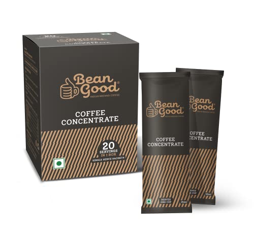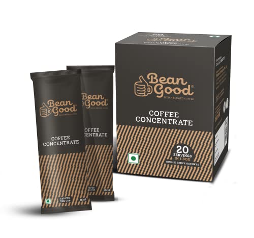 HomeGroceryBeveragesCoffeeBean Good Indian Brewed Coffee Concentrate Serves 20 Cups - 300ml (15ml single serve sachet x 20)- Instant South Indian Filter Coffee Decoction - 80% Coffee & 20% Chicory Blend - Just Add Water / Milk / Sugar Brown