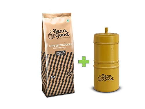 Bean Good Indian Brewed Filter Coffee Powder 250g (Strong 80% Coffee & 20% Chicory Blend) with Stainless South Indian Filter Coffee Maker - 200 ml
