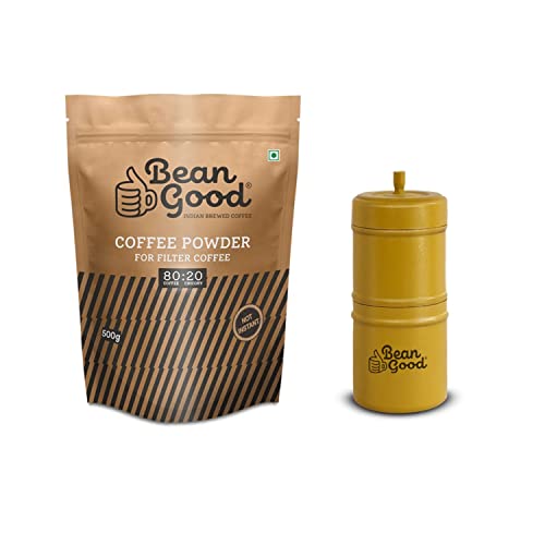 Bean Good Indian Brewed Filter Coffee Powder 500g (Strong 80% Coffee & 20% Chicory Blend) with Stainless South Indian Filter Coffee Maker - 200 ml