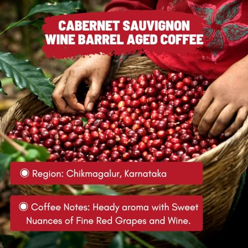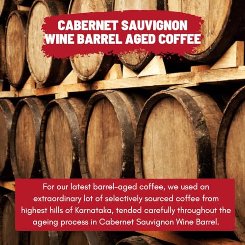 WHAT IS BARREL AGED COFFEE? The Deepest Coffee Expertise Meets the legacy of world’s most recognised Red Wine : Cabernet Sauvignon. For our latest barrel-aged coffee we used an extraordinary lot of selectively sourced coffee from highest hills of Karnataka tended carefully throughout the ageing process in Cabernet Sauvignon Wine Barrel. The result is a Showstopper a cup that has a heady aroma with sweet nuances of fine red grapes and wine. A mingling of Coffee and traditions.