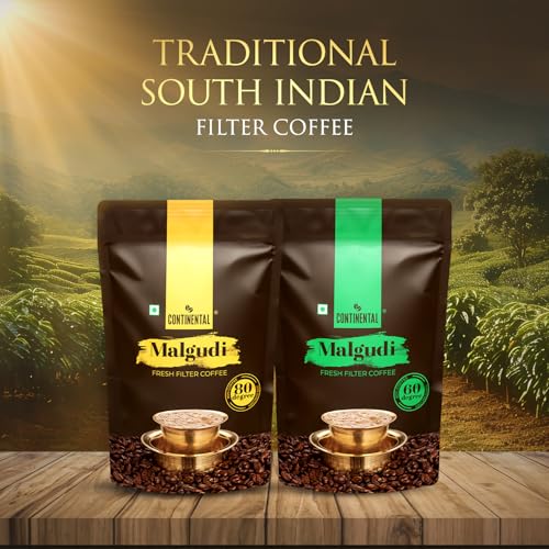 Continental Malgudi Filter Coffee Powder | 200gm Pouch | 60% Coffee - 40% Chicory | Traditional South Indian Filter Coffee Powder | Locks Real Aroma | Freshly Roasted Ground Coffee Powder