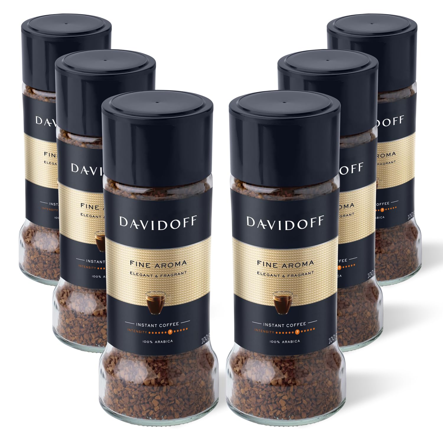 Davidoff Fine Aroma Instant Coffee 7/12 Intensity - 100% Arabica 3.53 oz 100g Granule Glass Bottle - PACK OF 6