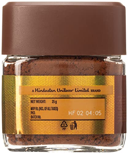 Bru Gold Instant Coffee offers you the authentic taste of coffee in its purest form. It is 100% pure coffee with a perfect blend of high-quality Arabica and Robusta coffee beans which are sourced from the finest plantations of South India. The coffee is finely sorted and roasted to perfection to deliver a mix that retains its qualities for a long time. It is also easy to use as it mixes effortlessly with water and milk. This smooth coffee mix is an excellent way to start a fresh day or catch up on some important moments. You can now savour every sip to the fullest with Bru Gold 100% pure coffee. Go get it right away! ABOUT BRU A part of Hindustan Unilever ltd. BRU Coffee is India's largest and favourite coffee brand that offers a wide variety of coffee products. Since 1968 BRU has been a pioneer in bringing the authentic taste of coffee to Indian consumers. The best coffee beans are selected from across innumerable coffee trails and freshly roasted to serve a great cup of rich irresistible coffee. BRU has four distinct offerings â BRU Instant and BRU Gold in Instant coffee BRU Green Label and BRU Select in Filter coffee. BRU-ed with love and blended with passion BRU Coffee celebrates authenticity in coffee and relationships.