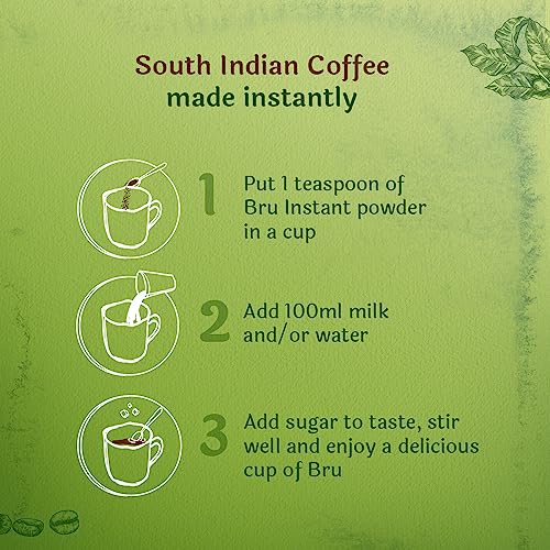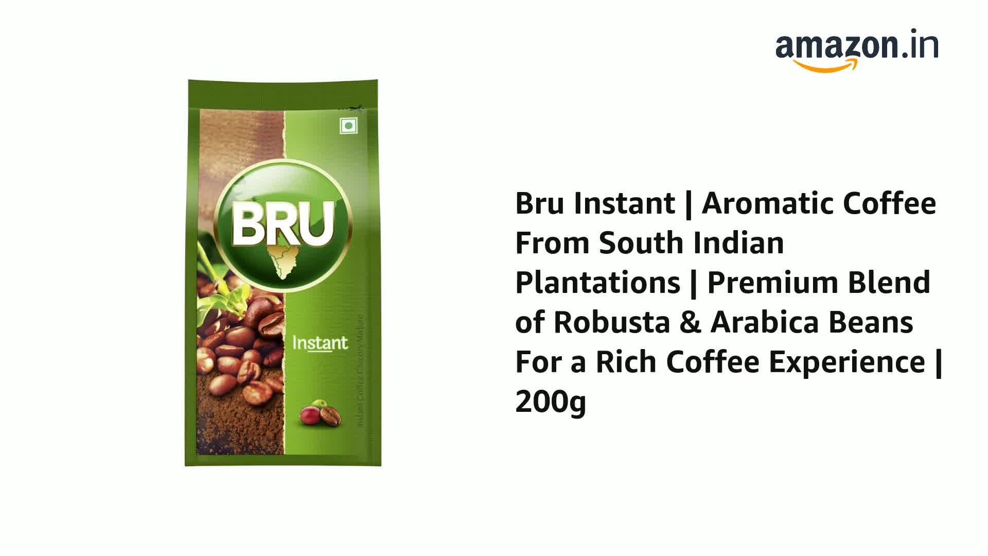 BRU Instant Coffee was launched in 1968 and was India's first coffee- chicory mix instant coffee. It has remained India's No. 1 coffee brand since then. It is made from a fine blend of the choicest plantation and Robusta beans. These coffee beans are first roasted to perfection then the new & enhanced process ensures that the fresh coffee aroma is preserved so that you get a rich coffee taste beyond compare. Bru Instant coffee can be used to make an aromatic cup of hot coffee as well as a refreshing glass of cold coffee. With Bru Instant you can now discover a great coffee experience with your loved ones. Buy Now!About BRUA part of Hindustan Unilever ltd. BRU Coffee is India's largest and favourite coffee brand that offers a wide variety of coffee products. Since 1968 BRU has been a pioneer in bringing the authentic taste of coffee to Indian consumers. The best coffee beans are selected from across innumerable coffee trails and freshly roasted to serve a great cup of rich irresistible coffee. BRU has four distinct offerings â BRU Instant and BRU Gold in Instant coffee BRU Green Label and BRU Select in Filter coffee. BRU-ed with love and blended with passion BRU Coffee celebrates authenticity in coffee and relationships.