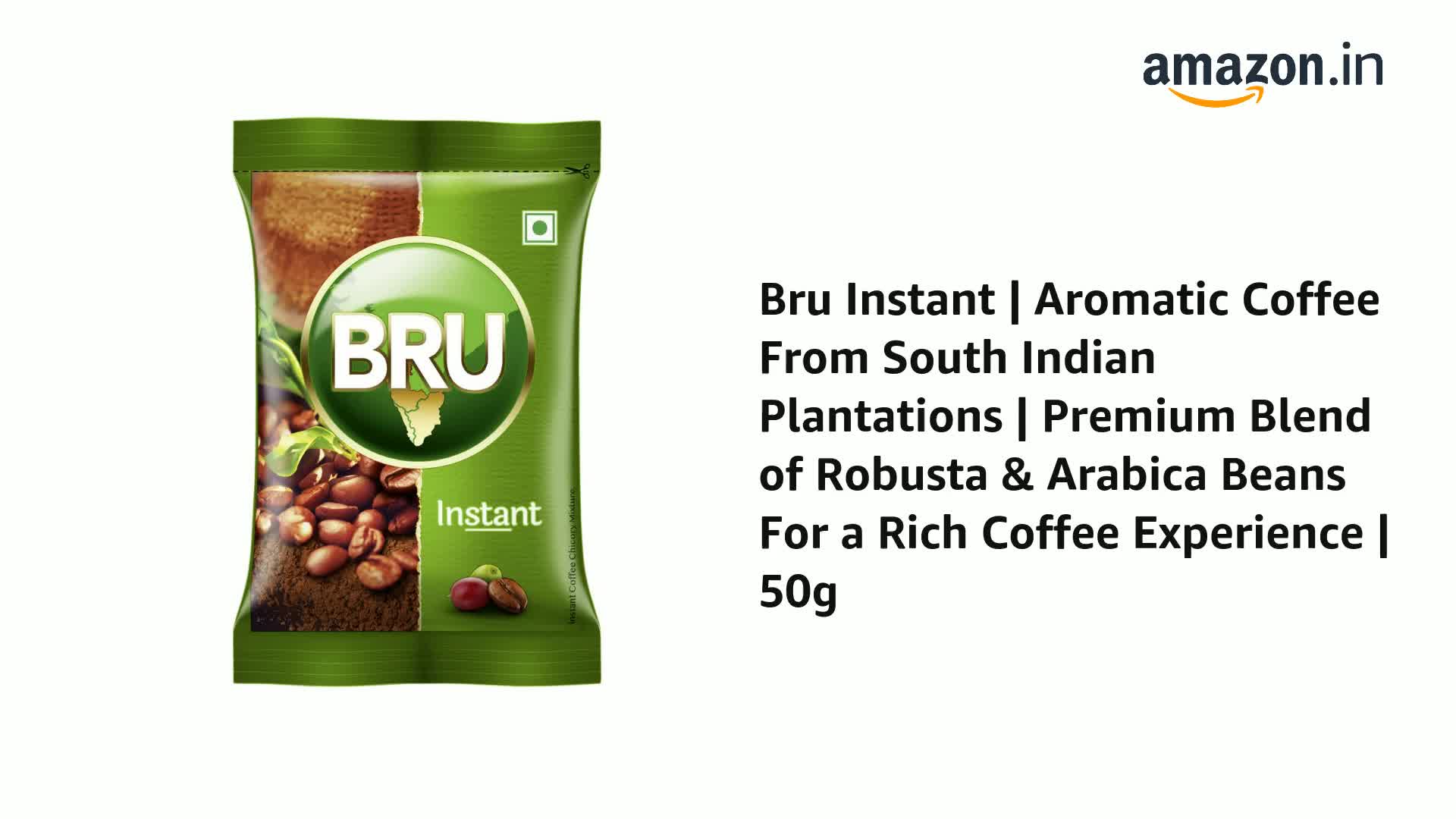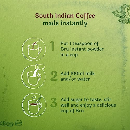 BRU Instant Coffee was launched in 1968 and was India's first coffee- chicory mix instant coffee. It has remained India's No. 1 coffee brand since then. It is made from a fine blend of the choicest plantation and Robusta beans. These coffee beans are first roasted to perfection then the new & enhanced process ensures that the fresh coffee aroma is preserved so that you get a rich coffee taste beyond compare. Bru Instant coffee can be used to make an aromatic cup of hot coffee as well as a refreshing glass of cold coffee. With Bru Instant you can now discover a great coffee experience with your loved ones. Buy Now!ABOUT BRU A part of Hindustan Unilever ltd. BRU Coffee is India's largest and favourite coffee brand that offers a wide variety of coffee products. Since 1968 BRU has been a pioneer in bringing the authentic taste of coffee to Indian consumers. The best coffee beans are selected from across innumerable coffee trails and freshly roasted to serve a great cup of rich irresistible coffee. BRU has four distinct offerings â BRU Instant and BRU Gold in Instant coffee BRU Green Label and BRU Select in Filter coffee. BRU-ed with love and blended with passion BRU Coffee celebrates authenticity in coffee and relationships.