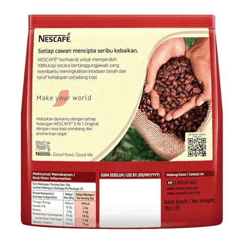 Nescafe 3 In 1 Instant Coffee Sticks Original - Best Asian Coffee Imported From Malaysia- Bag 18 Gram
