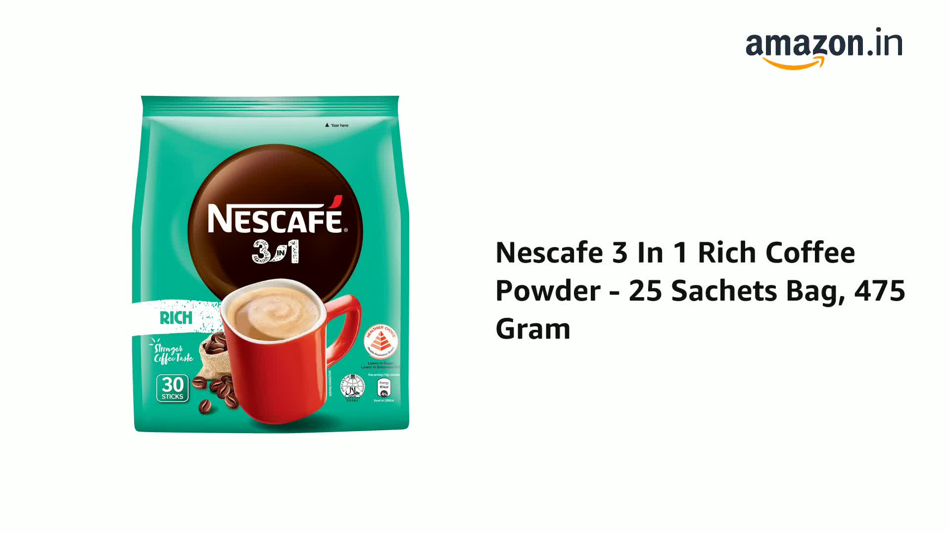 Nescafe 3 In 1 Rich Coffee Powder - 25 Sachets Bag 475 Gram