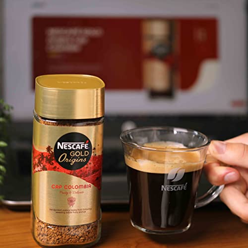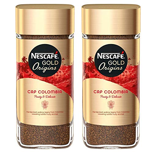 Expertly crafted with 100% Arabica beans from Colombia this premium single origin instant coffee delights the senses with its delicate nuanced flavour. Handpicked by local farmers in the tropical high altitude of the huila region of Colombia the quality Arabica coffee beans that make this premium instant coffee give NESCAFE gold origins cap Colombia its authentic flavour and fine citrus aroma.