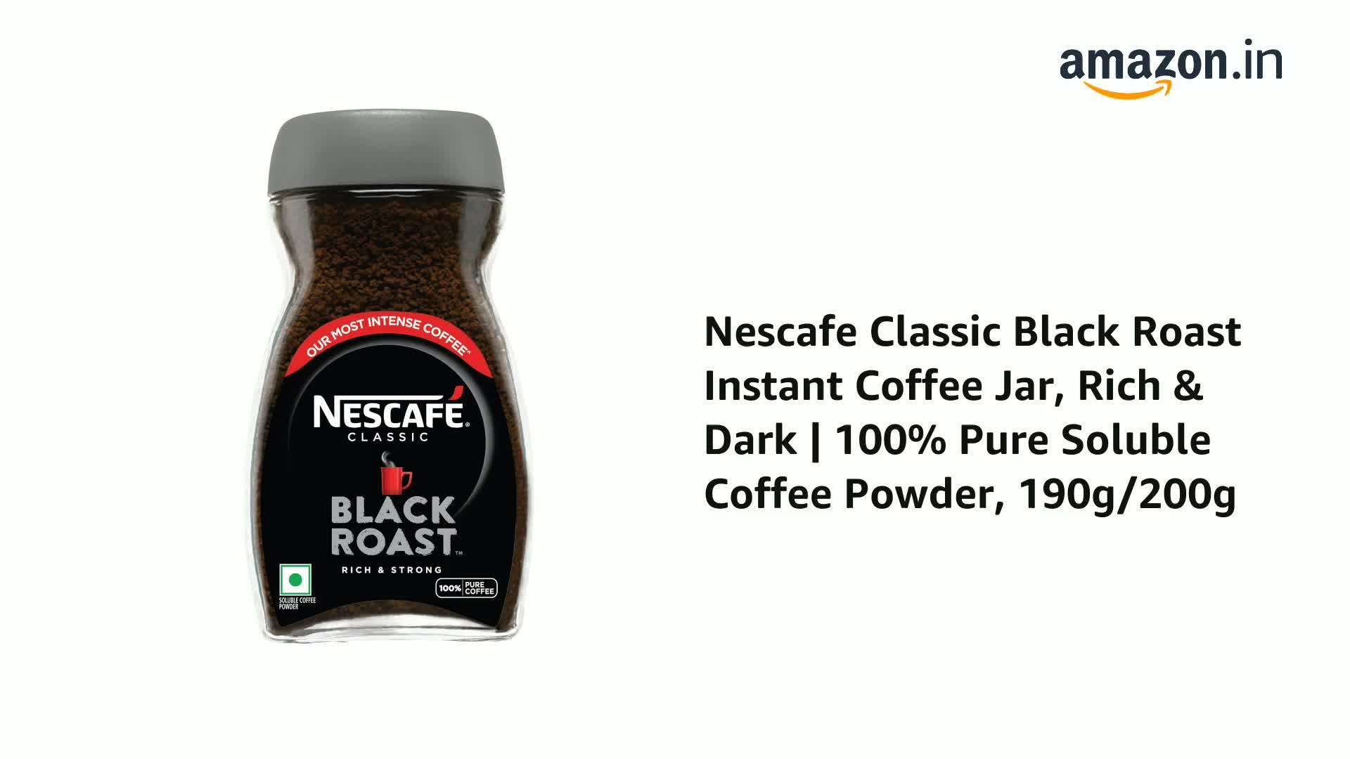 Nescafe Classic Black Roast Instant Coffee | Roasted Longer For A Stronger Cup | Strong & Intense | 100% Pure Soluble Coffee Powder | 190G /200G Jar (Weight May Vary), 190 Gram